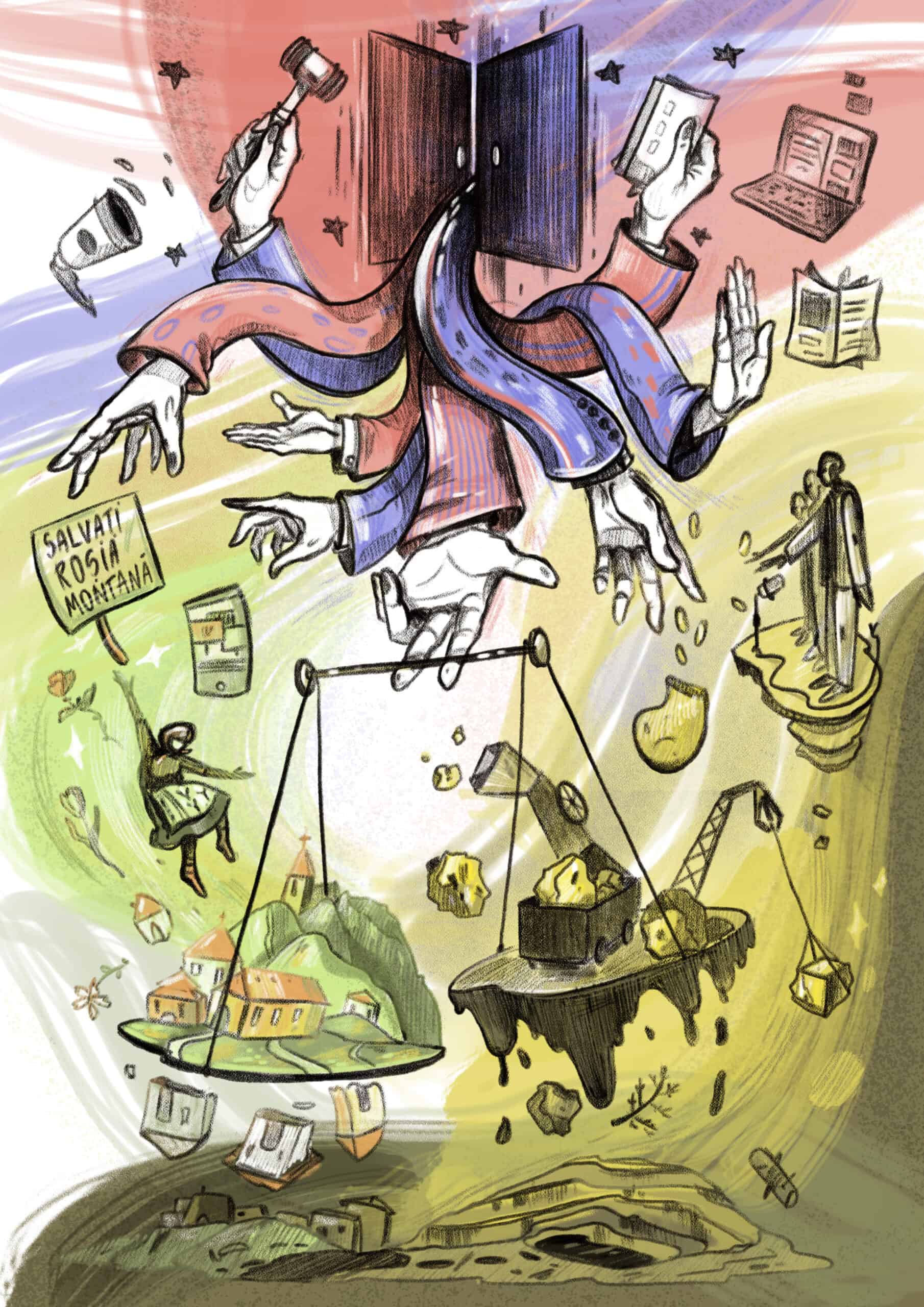 Corporațiile au avut mereu puterea de a-și cere drepturile: libertatea lor se ciocneste deseori cu libertatea altora de a-și proteja nevoile și viața. Articolul analizează arbitrajul privind Roșia Montană intentat de Gabriel Resources împotriva României în 2015. Dincolo de victoria neașteptată a României, dorim să scoatem în evidență că acest mecanism legal controversat este o formă de perpetuare a nedreptăților structurale. În perioada ianuarie – iulie 2024, cercetarea noastră a vizat analiza modului în care acest subiect a fost abordat de actorii principali din România, prin analizarea declarațiilor publice ale oficialilor guvernamentali și a presei mainstream, precum și din interviuri cu rezidenți din Roșia Montană.